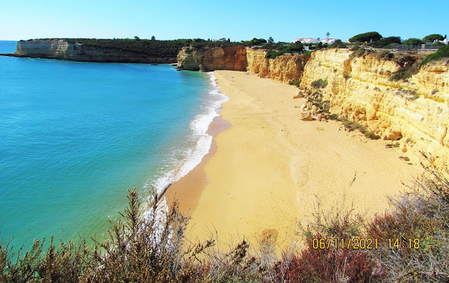 Praia de Nossa Senhora da Rocha (Beach of Our Lady of the Rock) is a beach on the Atlantic coast of the civil parish/freguesia of Porches in the municipality/concelho of Lagoa (Algarve) in Portugal. The beach is one of the most rustic ones along the coast and was used as a refuge for small fishing boats in the area.